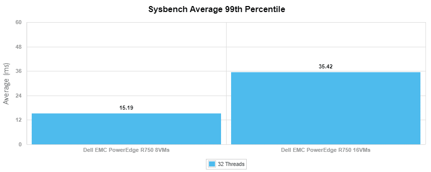 Trong kịch bản xấu nhất của chúng tôi, ở phân vị thứ 99, độ trễ của 8 VM đạt mức tổng là 15,2ms và 16 VM đạt mức tổng là 35,4ms.
