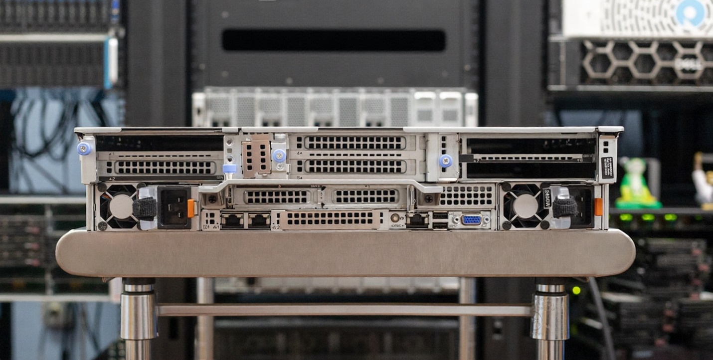 Theo đó, đơn vị đánh giá của chúng tôi được trang bị bộ vi xử lý AMD EPYC 9354P 32 nhân đi kèm với 16GB RAM — mức dung lượng RAM chắc chắn thấp hơn so với hầu hết các máy tính để bàn phổ thông hiện nay. Khả năng lưu trữ và kết nối của máy chủ cũng đi theo mô típ đơn giản này. Được trang bị card RAID PERC 11 và bảng mạch kết nối (backplane) hỗ trợ SATA/SAS/NVMe, máy cung cấp các tùy chọn lưu trữ cơ bản nhưng linh hoạt. Cổng Ethernet 1GbE kép cung cấp kết nối mạng tiêu chuẩn, phù hợp cho các tác vụ hàng ngày.