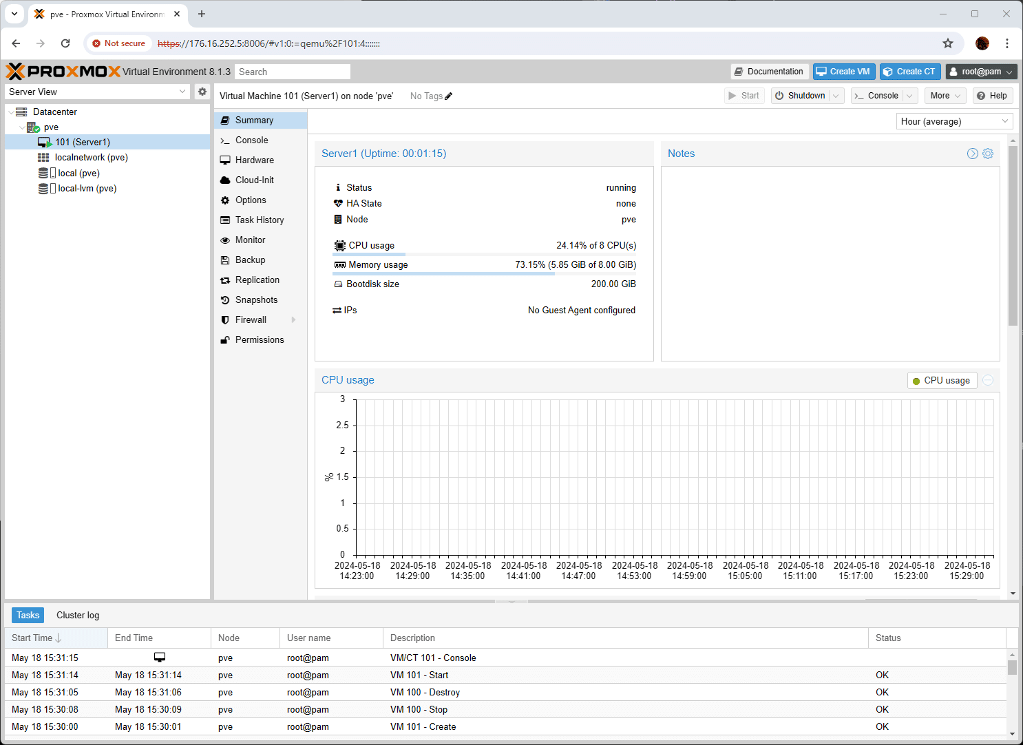 Việc cài đặt và vận hành Proxmox khá đơn giản. Sau khi trình ảo hóa được cài đặt và chúng tôi đăng nhập vào hệ thống thông qua trình duyệt web, chúng tôi đã được tiếp cận với giao diện quản lý trực quan của nó. Trong bài đánh giá ban đầu này, trọng tâm của chúng tôi chỉ giới hạn ở việc cài đặt một máy ảo khách (guest VM), và việc đó đã diễn ra rất suôn sẻ. Chúng tôi sẽ thực hiện các bài kiểm tra chuyên sâu hơn trong một bài viết tiếp theo để phân tích kỹ hơn về Proxmox trên nền tảng này.