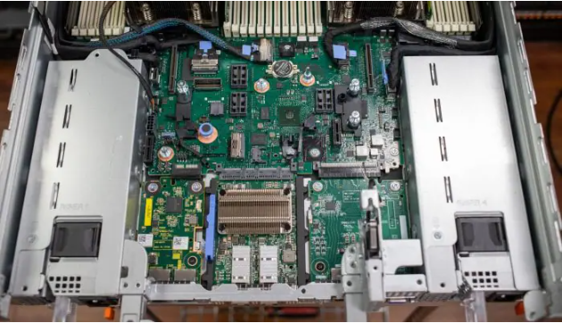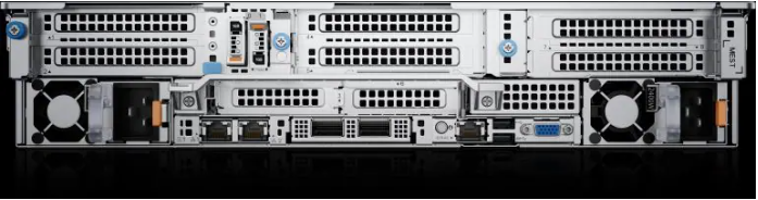 Các cổng phía sau bao gồm một cổng USB 2.0, một cổng Ethernet iDRAC và một cổng USB 3.0, đầu ra video VGA. Không có trong cấu hình của chúng tôi, nhưng PowerEdge R7625 có thể lắp hai hoặc bốn ổ đĩa 2,5 inch hoặc bốn ổ đĩa EDSFF E3.S. Các nguồn điện dự phòng được bố trí ở cả hai đầu; tùy chọn hàng đầu là Titanium 3.200 watt.